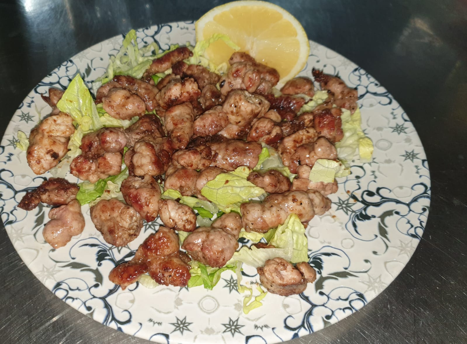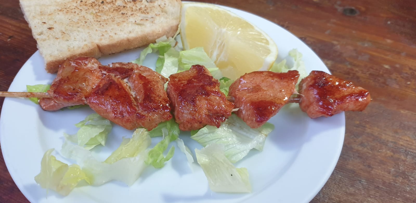(Brocheta de carne de cerdo condimentada a la plancha)