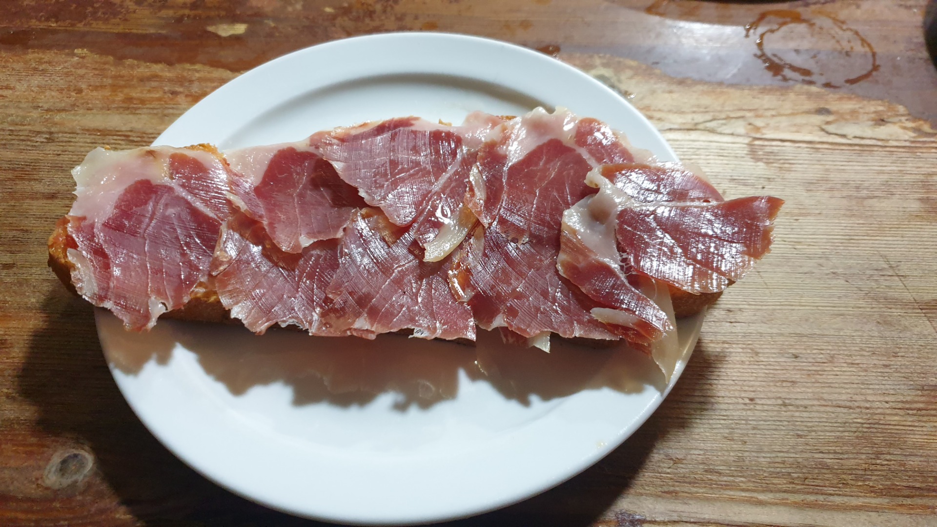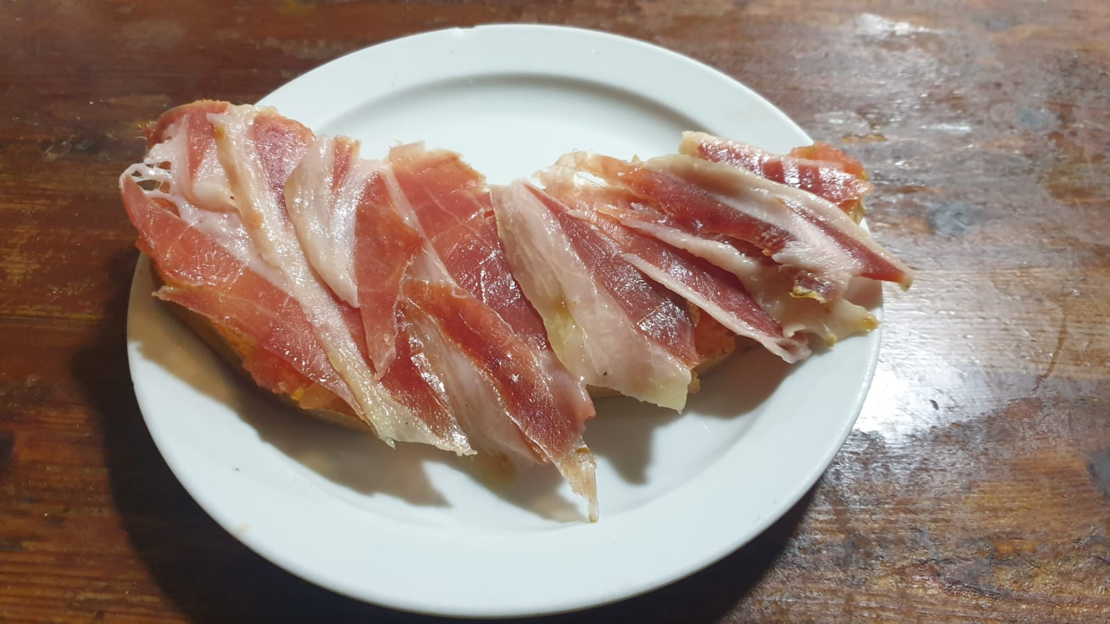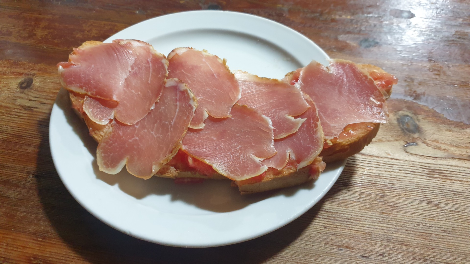(Pan tostado con tomate rallado y jamón ibérico)